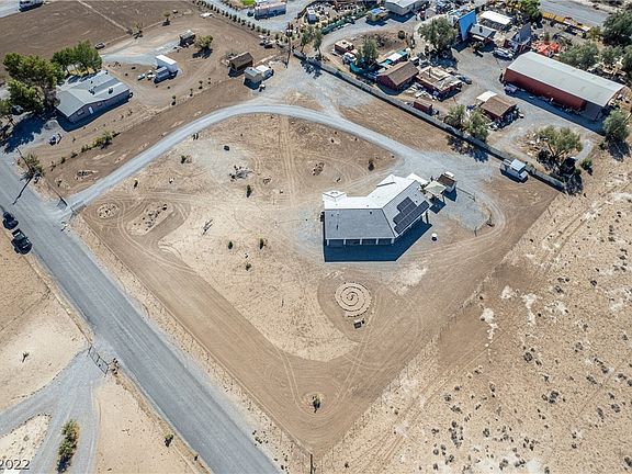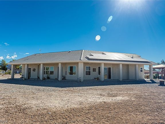 Location is key! This home is nestled to enhance all the surrounding beauty. Built specifically for the best setting of views. This residence boasts 3 bedrooms and 2 bathrooms, Durable epoxy cement flooring, quartz countertops throughout, barn door panty, fans in every room. Sitting on a large 2.25 acre lot, including 3, yes, 3 storage buildings, 2 of which are new. 6" wall constructed for ultimate efficiency, 22 panel owned solar system that produces more power than consumed since installation. A Gazebo and dog run. Anderson double paned windows, 3 solar tubes that enhance the abundant natural light of this home. The well was re drilled upon building. Also a new septic tank was installed when built as well. RV hookup and second septic tank in place. On the back deck you have sun screens for the entire rear or you can take in the breathtaking unobstructed views of the Nopah mountains. Come see this for yourself. Truly one of a kind.