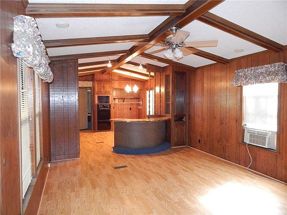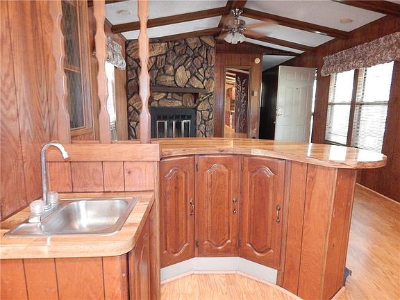 Your camp is ready!! Convenient location on a paved street! This 1985 mobile has a metal roof, laminate flooring, like new carpet and a pretty cool split floorplan. 3 bedrooms, 2 full baths, fireplace, wet bar, garden tub in the master with double lavatories and much more. The lot is approx. 0.50 of an acre and there is a metal carport cover with a storage/workshop and a circle asphalt driveway. Come see!