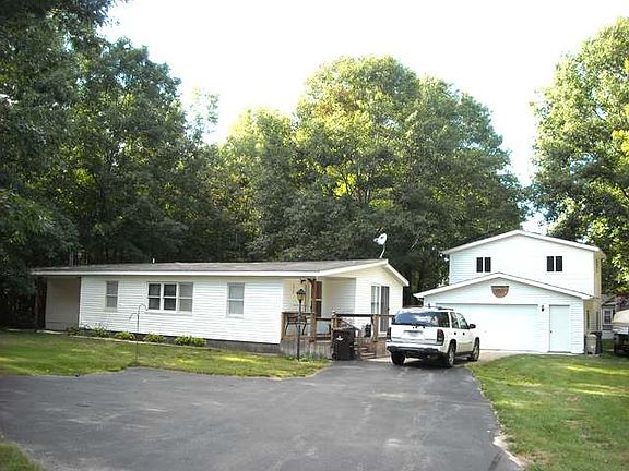 The home that has been remodeled with drywall interior in 2010, open kitchen & dining room with sliding door wall to the deck. 10x35 addition opens up the home & living space, 13x23 living room has a sliding door wall to the covered back patio. 10x10 1/2 entry room was the computer room, 3rd bedroom has shelving for storage, and a closet. Large bedroom in back has a sliding door wall also. Garage has an additional 2nd story storage room, another small garage/shed with garage door & small shed. The back yard is very shady with mature maples, concrete & paved drive. Near all sports Secord Lake & thousands of acres of state land. The home is a bit cluttered, so I have used previous photos, from when the owner purchased it. It will be broom cleaned at occupancy.