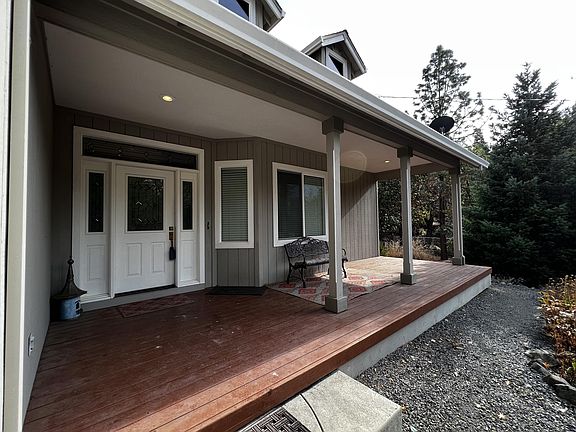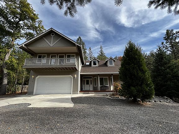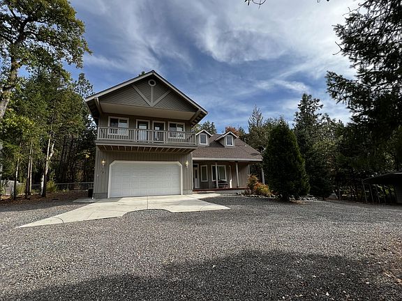 Great value on this remarkable home in the Applegate Valley. Vaulted ceilings, cultured stone fireplace w/wood stove insert, wood floors, great-room plus formal dining, stainless appliances including glass top slide in range/oven combo, D/W, and side by side refrigerator, immense cabinet space w/glass uppers, French doors leading to main patio with cross fenced back yard space for pets and a wonderful gathering area for enjoying the woods and forest. A wonderful space for BBQ's, gatherings, and a campfire. 3 full bathrooms w/jetted master tub and walk in closet upstairs, and balconies off the upper story bedrooms w/peaceful views of the forest to the rear of the home. Space between neighbors, fully fenced w/automatic gate, plenty of room for RV and parking, additional dog kennel/run/chicken coop, additional metal carport and storage shed. Good location just minutes from historic Jacksonville, near world class wineries, trails, Applegate Lake and conveniences of nearby stores/shopping.