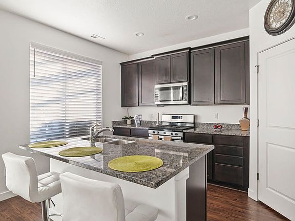 Unique model home. Fully fenced, front and back yard sprinklers already installed. Kitchen with granite countertops and Premier kitchen cabinet layout Wood-Finishes: Sarsaparilla. Gas range, second sink in Master bath, 8' main front door, patio sliding glass door, custom flooring-carpet 720 barely there Pad: memory step 7 lbs, custom flooring laminate, Elevation option "A". Driveway extended to comfortably drive vehicles into garage. Extended concrete slab patio 10'x17'4" with attached pergola.