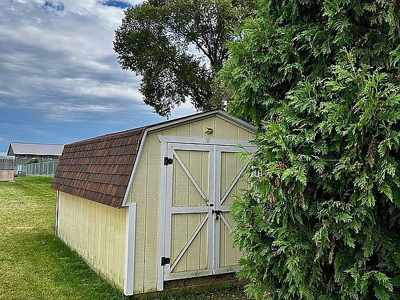 3 bedroom 2 bath mobile home in Walcott on a corner lot. Recent updates new in 2024 include deck and railing, flooring in 2 bedrooms, toilets, kitchen sink, garbage disposal, faucet, stove, dryer, and custom thermal shades for windows . New roof in 2020. Main bedroom has French doors leading to a spacious bathroom with a soaking tub and a separate shower. Take your meals in the eat-in kitchen. A front deck and patio offers an outdoor living space. Close to walking/bike path and park. Clean, bright, and move-in ready. Cash offers preferred, or mobile home lending pre-approval prior to showing. Residents must be pre-approved by Walcott