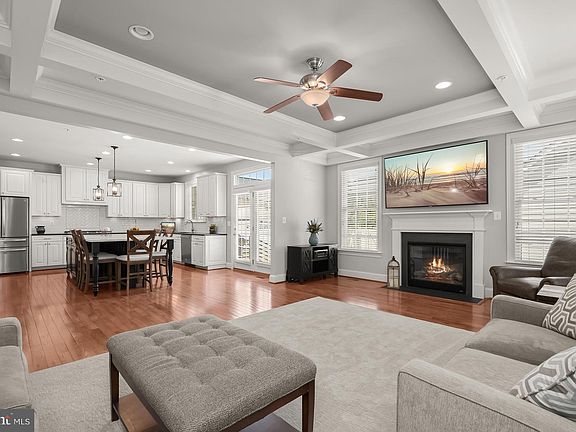 Offer Deadline Monday, July 3rd at 12pm. Beautiful Beaconsfield model by NV Homes, located in Fulton’s amenity rich Maple Lawn community. This home boasts a front porch overlooking community green space and updates that include the recently renovated kitchen, primary bath, fixtures throughout and more! Enter through the covered front porch to a bright and airy foyer highlighting hardwood flooring, and a soothing neutral color palette. Wide archways open to formal living and dining rooms showcasing tray ceilings and accent molding, creating the perfect ambiance for intimate gatherings. The gourmet kitchen has been updated with an oversized island, quartz and leathered granite countertops, white herring bone backsplash, white and dark cabinetry, and high end stainless appliances. An impressive coffered ceiling is detailed in the off kitchen family room that offers a cozy fireplace. There’s an office behind glass French doors and a powder room. Ascend the staircase to the primary bedroom suite accented with a tray ceiling, a walk-in closet and attached luxury bath with an oversized shower with decorative tile inlay, and dual vanities. Three sizable bedrooms and a hall bath complete the upper level. A recreation room with a dry bar and beverage refrigerator, a full bath, and flex room or potential 5th bedroom are located on the lower level. Enjoy outdoor living on the expansive stone patio and flat green space in the private fenced back yard. Maple Lawn offers an extensive list of amenities that include a swimming pool, sports courts, tot lots, and more!