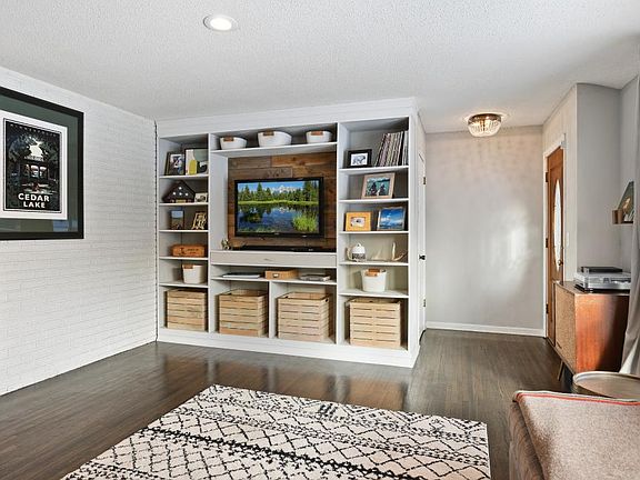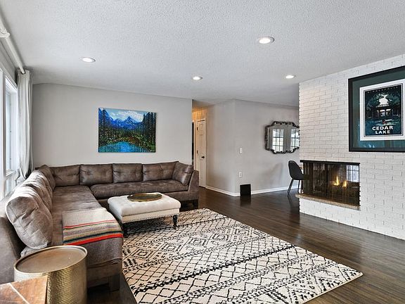 Mid-century rambler includes beautiful dark stained hardwood flrs, large airy spaces, 3-sided gas log fireplace, built-ins, & an INCREDIBLE BACKYARD! Updated kitchen includes stainless appliances, new fixtures, granite counters, & white cabinets with great storage. French doors walk out the deck overlooking the spectacular, fully fenced backyard. Backyard oasis is fully outfitted for relaxation and entertaining with firepit, pergola hammock, & hot tub. Many new windows. light fixtures, water heater/softner, gutters, ++. In-ceiling lighting in living area and kitchen provide light, bright, spaces. Huge main floor master bedroom w/double closets...all bedrooms very generously proportioned. Lower level family room has newer carpet, wood burning fireplace w/new 2-car ATTACHED garage. Views of Little Willow Park (just across the street). Close to West End Shops, Westwood Hills Nature Center, & Cedar Lake Trail which connects to Mpls trail system.
