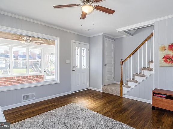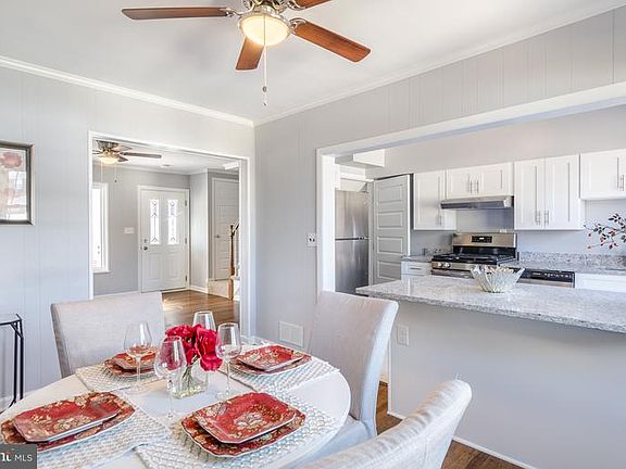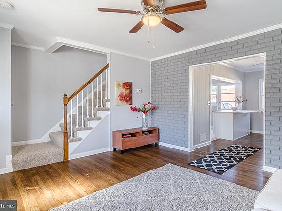 PICTURE PERFECT RENOVATION WITH 3 FINISHED LEVELS & PARKING! Spacious LR & separate DR w/ hw floors & crown molding, designer kitchen w/ granite counters & ss appliances, upper level w/ 3 bedrooms & 1 full bath, finished basement w/ family room & laundry/storage room, enclosed front porch, and rear yard w/ gated parking pad! Pack your bags & move right in!