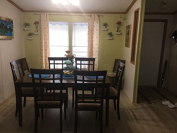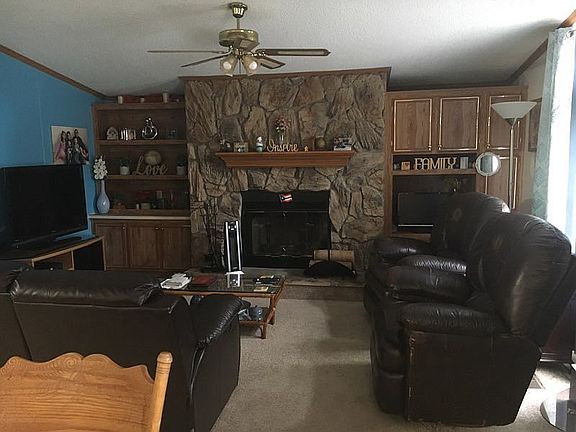 Nice huge, well cared home, off street cul de sac, 3 bedrooms + 2 bathrooms, living and family room, i plenty of cabinets, vinyl siding, , large front deck, new gas furnace, A/C, vinyl and pergo flooring, fridge, stove, dishwasher, dryer, fireplace. New owner must pass background and credit check with the Holiday Mobile Home Estates.