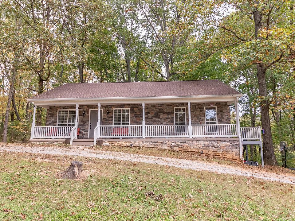 HIGHEST AND BEST BY SUNDAY 10/18 6PM. Fantastic starter home! This 2bed/2bath house features a spacious living room w/ vaulted ceilings. Large kitchen with granite counter tops and SS appliances. Fresh paint. New HVAC. Downstairs is a fully finished basement! Mature trees shade over 2+ acres for kids to run and play! Relax on either the full length porch or entertain on the back deck! Please access basement through the garage.