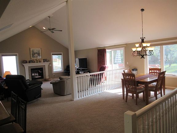 Very rare 3 bedroom, 2 1/2 bath ranch on a full finished basement! Open floor plan with Great Room that boasts cathedral ceilings, gas fireplace with beautiful mantel, pocket door to the laundry room, rounded corners throughout, 12 foot ceiling in garage, Master Bedroom en suite with jetted tub, and stand up shower. Master Bedroom has his and hers closets (hers is a huge walk-in of course). City water powered Guardian back up for sump pump keeping the basement bone dry no matter if you have lost power or have a dead battery. Gorgeous full bar in basement and a fully restored vintage pool table, and all appliances stay with the home. Shaded back yard with deck to enjoy your cook outs on. Make sure you schedule your showing soon as this won't last long.