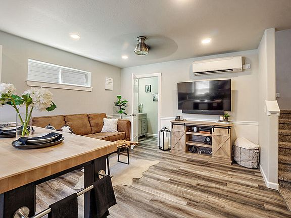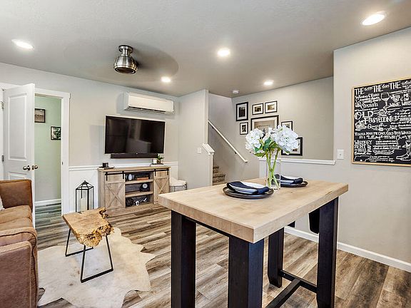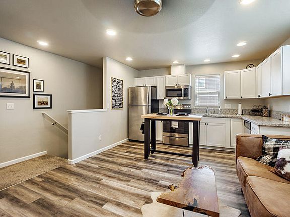 Welcome home! This adorable 1 bedroom, 1 & 1/2 bath split level townhome is just waiting for. As you walk through the door, you'll immediately notice the attention to detail. Beautiful luxury vinyl and carpet flooring, and the added ceiling fans and canned lights make this home feel even more inviting. The kitchen/dining great-room has all white cabinets, stainless steel appliances that include a 5-burner glass top range, electric convection oven with microwave & hood. You'll love cooking here! Bathrooms feature cultured marble and granite, truly adding to the luxurious feel of this home. With mini split heating and air, you'll be comfortable year-round with low utility costs. Upstairs, the bedroom boasts a tongue & groove wood wall and a full bathroom with a fiberglass tub/shower combo. Nice sized Single car garage and cement driveway for storage or parking. Laundry day will be a breeze with a washer and dryer already included in the garage. Great for Investors as well!