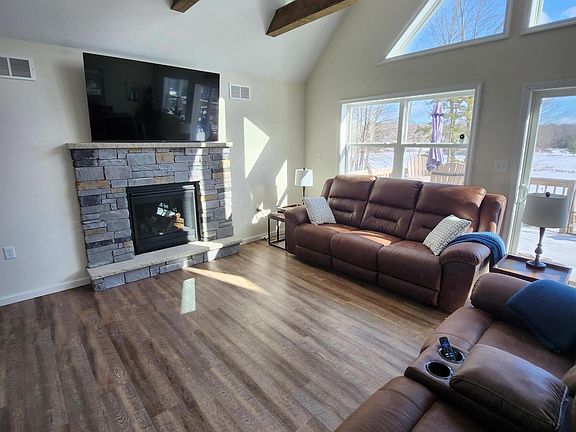 Lakefront, Lakefront, Spring into Spring with this still freshly built, Lakefront home, Still Smells like New construction and looks like it too. Barely used 4yrs old 3 Level Chalet overlooking the 260 Acre lakeside in Arrowhead Lakes. Put in A dock and buy your Pontoon Boat 4 Spacious Bedrooms 3Baths and tons of living Space for the whole family and your Guests. The nicely appointed Kitchen with SS appliances and Granite counter tops, Will accommodate the best of chefs. The Large windows make every room light and bight with Views of the Lake all day every day ,an open concept Kitchen /Living /dining. Day dreaming looking at the lake on the large deck or in front of the Fireplace. additionally, a 3-season room in case it Rains to hang out. This home is coming Turnkey, fully furnished. Invision a Dock, or sitting by the fire ring, watching the water. Fishing in the fully stocked lake.