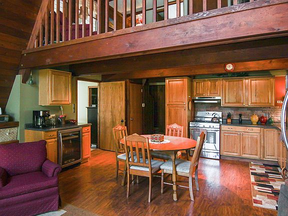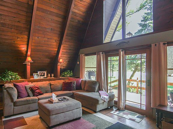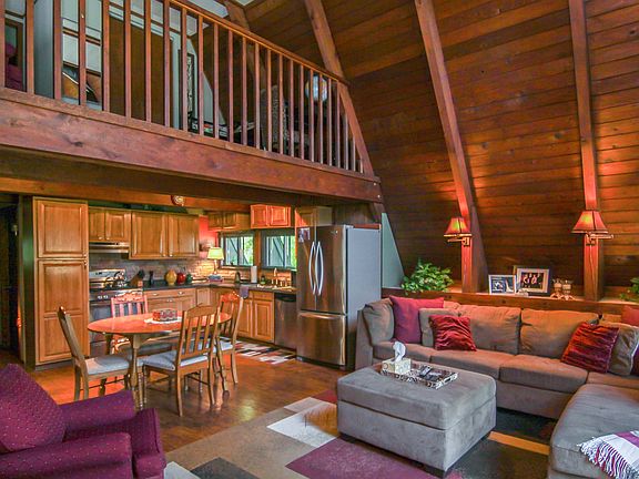 Tucked back from the road this stunning three bedroom, two bath A-Frame is a dream come true. Inviting open living room is breath taking. Main level master bedroom comes complete with three-quarter bath and private entrance. Loft overlooks the living room and has been finished with a third bedroom. Basement is perfect for storage including a solid floored crawl space for less needed items. A storage closet and shed give you even more storage solutions. Shed is wired and could easily be turned into a man cave or she shed. Two patios give you the choice to either look out upon your over half acre lot or soak up the soothing sounds of the creek. This is a rare opportunity to own a true work of art. Seller will pay two years of flood insurance, at a cost of at $1,722.00 per year, at time of closing with an acceptable offer.