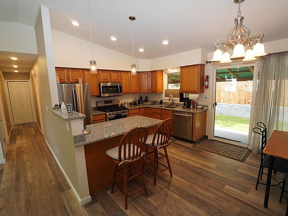 Come see this rare ranch home with a 2 car garage! 3 bedrooms, 1.75 baths! Master has walk in closet and private bath. In 2016 this home went through a major remodel to include: New flooring, new insulation, all new wiring, new gas fireplace, new doors, new kitchen with granite counters and more! Situated on a corner lot with a covered deck and extra storage! Perfect home for anyone!