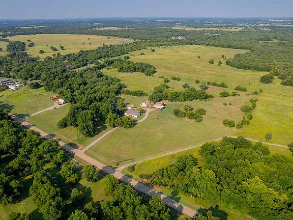 LAND-LOTS OF LAND..@70 acres off of a paved road! Not only could you roam free on this acreage; there is a awesome farm house with barns/old dairy barn/barn type apartment and more. Property is sprinkled with Pecan/Pear/Black Walnut Trees. Perimeter Fencing. Farm house is approx. 2226 sqft with 3 bedrooms; 2 full baths, 2 living areas and updated. Appliances updated within the last 2 years, roof & furnace in 2022. Pex water lines installed. Bathroom remodel. Original Beautiful hard wood flooring. Love attic fans; it has one and it works! Cozy living area overlooking well manicured front yard and drive; plus built ins. Additional converted den with wood burning stove (heat/cooled space). True mud room/laundry room. Kitchen has island seating, updated cabinetry, and situated with open dining space. Milk house with apartment living upstairs. Concrete floored shop with accessories; electric compressor stays. Full shop for the shop smith (if desired). Propane. Well Water. CREC electric. CentraNet. Have Cattle? There are 2 ponds & a well for windmill. Other outbuildings. Large Cellar. ADDED BONUS: 5th wheel (very nice RV) is included. You could use that for travelling and build another house in this spot (separate drive from farm house). ALL OF this could be yours; bring all of your animals; family, and start your own farm! Located just off of East 68th & Prairie (all paved roads). Just minutes from Hwy 177. To know the full extent of this property; you should see in person!