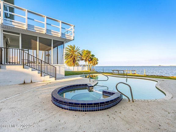 BOASTING A HUGE, PANORAMIC VIEW OF THE BANANA RIVER THAT SPANS OVER A MILE ACROSS- TO A1A, this waterfront gem features a DEEP WATER T-Chanel w/ access to the Indian River & Atlantic. Excellent S. Merritt Island location! Just north of Pineda Cswy. & only 5+ miles to Mathers Bridge. Rear yard completely level- goes all the way to 119' coquina rock sea wall, w/ no mangroves to obstruct water views- which is rare to find!! Oversized level, fenced lot with in-ground pool. Circular driveway. Extra large screened in porch; upper porch also off master suite- with unbelievable water views! Scenery is ever-changing w/ boats sailing by, rockets launching, & wildlife viewing of all kinds including dolphins, manatees & many species of birds. Home is in excellent condition & care- by owner for last... last...