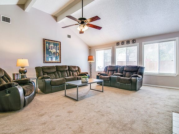 Invite friends and family over for a cook-out! This backyard is large enough to host your own soccer team! The tree shaded backyard has an extra-large patio. The kitchen has Stainless Steel gas range, micro-wave and dishwasher. A breakfast bar separates the kitchen and dining area. The open living room has a wall of windows over looking the backyard. It also has a vaulted ceiling and fireplace. The owner's suite has an updated bath with a walk-in slate tile shower, deep jetted tub with slate tile surround, double sinks and a walk-in closet. Energy efficient gas tankless water heater. 2 inch blinds, decorative light fixtures. Freshly painted exterior.