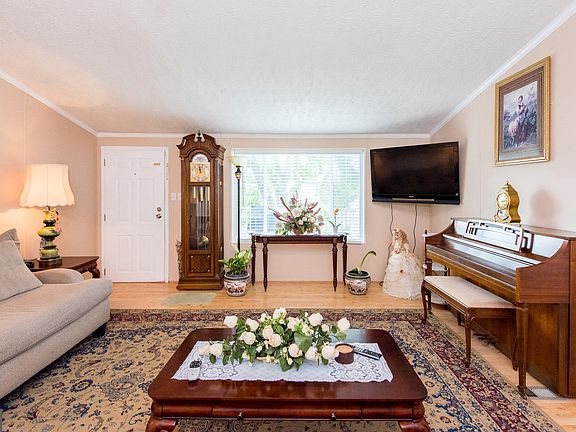 Greeted by an expansive cheery front porch, this 3 bedroom home welcomes with open-concept spaces and tons of updates! Sun-drenched living room with tall cathedral ceilings and cozy fireplace off huge open eat-in kitchen with shaker cabinets, neutral appliances, and upgraded countertops! Bedrooms each with walk-in closets include owner~s suite with attached bath boasting separate shower, separate soaking tub, and separate vanities! 2019 roof and freshly painted throughout! Excellent location~ Close to shopping, dining, and commuter routes! This is a mobile home and buyers must be approved by park. Ground rent includes, snow removal, water, trash and taxes.