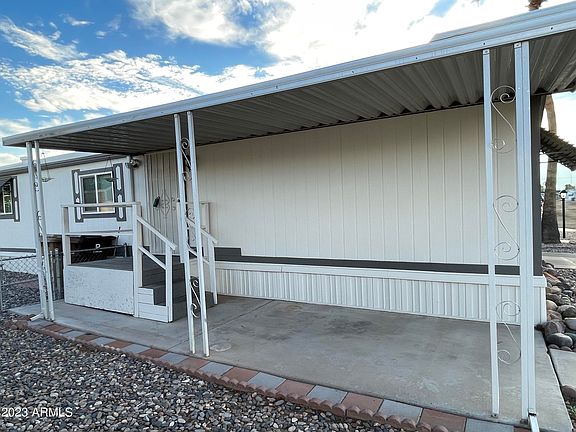 ALL AGES PARK Great Peoria Location! Super convenient to shopping, good schools and easy freeway access. This well maintained home features three bedrooms, Two bathrooms, open concept living, dinning and kitchen areas, inside laundry hookups and second covered deck patio area. Two vehicle carport with aluminum storage shed in backyard. Suncrest II is a well maintained park and features a community club house and pool along with children's play park. Strict but well maintained community will insure your ability to enjoy your home and amenities offered.