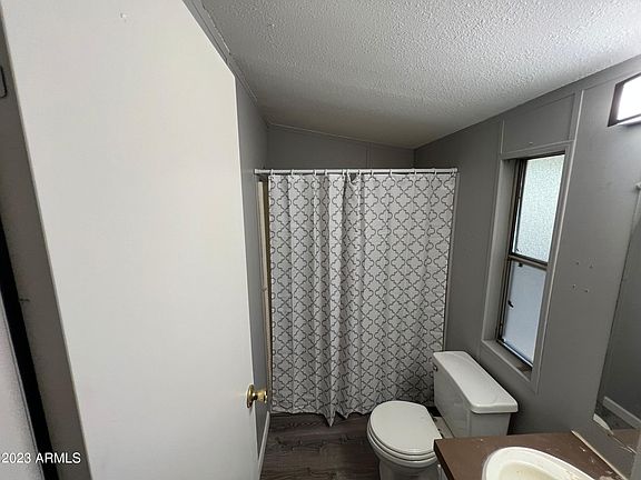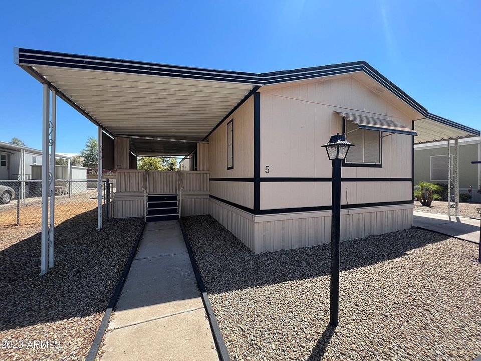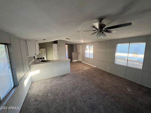 This home is located in a an all ages park in Peoria, Arizona. The park is close to schools, shopping, and restaurants. The home is 1,088 square feet and has a spacious floor plan. The living room is open to the kitchen and dining area, creating a great flow throughout the home. This home has been updated with new carpet and paint throughout. The home has a covered 2 car tandem carport and a side deck with security door. The deck is perfect for entertaining guests or relaxing on a warm summer day.