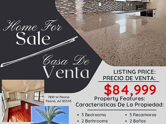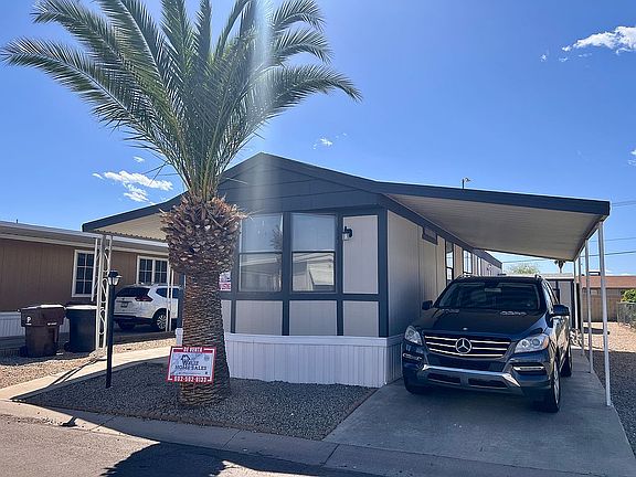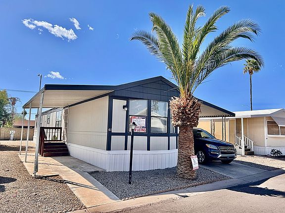 This charming 3 bedroom, 2 bath home in the vibrant City of Peoria, AZ offers a desirable living space that is both stylish and comfortable. With an inviting interior of over 900 sq ft, the home has recently been remodeled, boasting modern upgrades in the kitchen and bathrooms. For an effortless move-in experience, the house comes with essential appliances already included. The home is available for purchase, with an affordable rent lot price of $700/month. Financing options are available for qualified homebuyers, allowing families to make a wise investment in their future. The home is strategically located in the thriving City of Peoria, AZ, providing quick access to parks, schools, and shopping centers. This beautifully remodeled 3 bedroom, 2 bath home is a perfect choice for families looking for a pleasant and cozy living space that caters to their daily needs and connects them to their community.