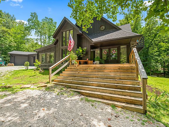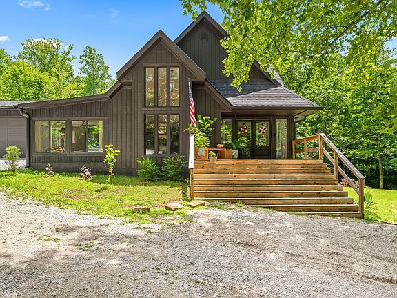 Welcome home to this wooded 5 acre beauty in the hills of Brown County! Completely remodeled and updated this home boasts 3 bedrooms 3 full bathrooms and ample storage!! Office space listed is currently being used as additional bedroom. Primary with stunning ensuite on main with additional bedroom and full bathroom. The huge open ceilings in the living room with floor to ceiling windows allow for tons of natural lighting. The kitchen is a dream! Complete with a HUGE pantry!! All stainless steel appliances stay in the kitchen to allow you to move right in and are only 2 years old. Step out to the 4 season sunroom from the primary or the living room. Equipped with its own heating and cooling system you will find your new favorite spot of this home. Now lets step upstairs. You will enter the loft area and 2 more bedrooms. Larger room has access to yet another deck to sit and enjoy the sounds of nature. Rounding out the upstairs with one more full bathroom, the laundry room and TONS of storage. This home has everything you can dream of. Lets not forget the expansive 4 car garage and fully encapsulated crawl space with spray foam insulation! Now that we have covered all the home has to offer lets take a stroll outdoors. Newly cut trails for walking or riding your 4wheelers around. Nice sized yard for entertaining but leaving tons of trees for privacy and seclusion. Plus plenty of parking for all your friends. This really is the dream home you've been looking for!!