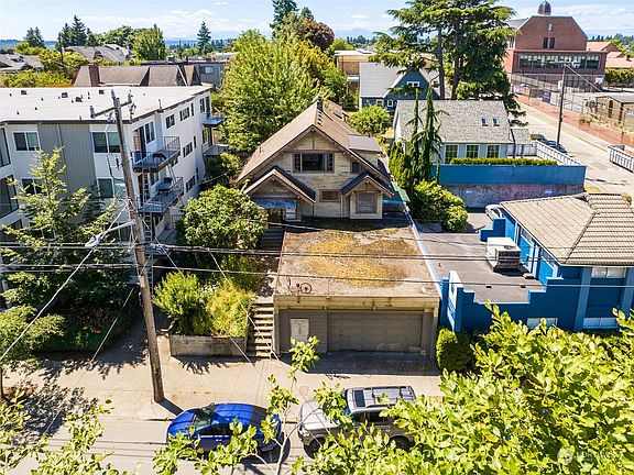 Classic Phinney Ridge Craftsman home. Update and live in or use for your Trade or Re-develop. It is in the desirable Phinney Ridge neighborhood. Bring your creativity. This house sits high off the street w/peek-a-boo mountain views. High ceilings, arched doorways, hardwood & fir floors. Excellent natural light. Oversized 2-car garage w/12 ft ceilings. Many options for current use &/or future development to maximize NC255(M) zoning. That's mixed use Residential/commercial up to 55' high! Town homes, office/retail space, live/work units or an apartment building. Transit, coffee shops, restaurants, groceries, parks, library & more all nearby. Walk score of 94. Easy access to 99, I-5, Green Lake, Ballard, Woodland Park, Downtown and more.