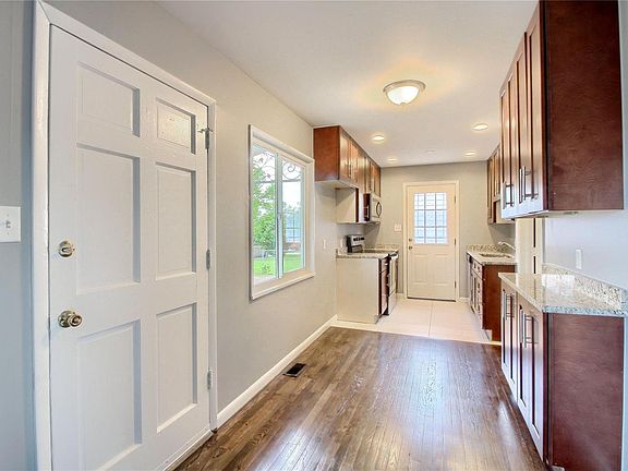 Recently remodeled and updated 5 bedroom, 2 bath ranch home with finished basement. Sprawling hardwood floors in spacious living room with abundant natural lighting. Updated kitchen with tile floors, granite counters, stainless steel appliances and ample cabinet space. 3 bedrooms and a full updated bathroom complete the main floor. Finished basement features new carpet, family room, 4th bedroom with walk-in closet and 5th bedroom with attached and updated 3/4 bathroom. Unfinished portion of basement has washer/dryer hookups and lots of space for storage. Double wide gravel driveway for lots of off street parking or RV parking. Fenced in backyard. Don't miss this great opportunity to own this move-in ready home!