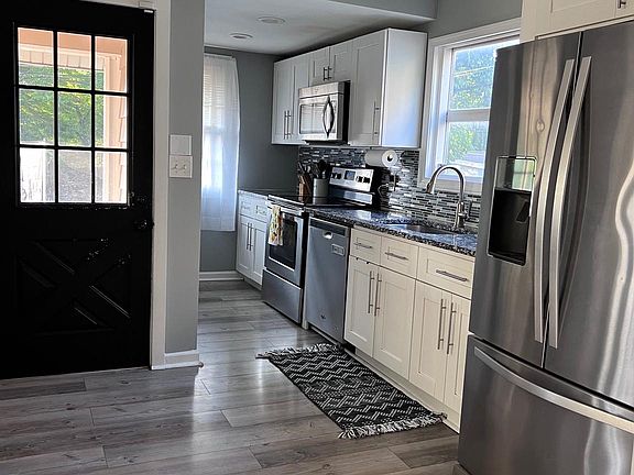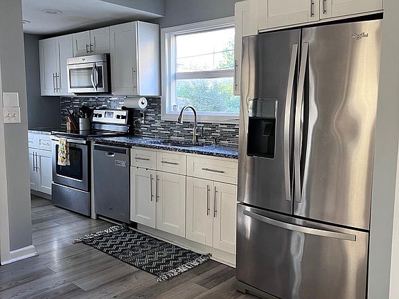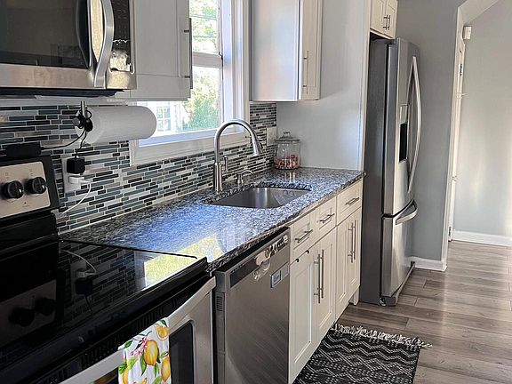 This charming 3-bedroom, 1.5-bathroom home in Paper Mill Village offers a serene setting and modern amenities. Nestled on a quiet street, you’ll enjoy picturesque views of the woods from your covered porch. Inside, the open floor plan of the first floor is enhanced by recessed lighting and ceiling fans. The spacious living and dining areas are perfect for entertaining, with original French doors leading to a rear covered deck and fenced-in backyard. The updated kitchen is a chef’s dream, featuring newer stainless steel appliances, granite countertops, and ample storage. Upstairs, the large master bedroom boasts generous closet space and recessed lighting. Two additional bedrooms offer full-size closets and ceiling fans for added comfort. The updated bathroom includes a convenient stall shower. The basement provides versatile space for storage or potential extra living area, and it includes a powder room for added convenience. This home is conveniently located near shopping centers, I-95 and the Turnpike. This home offers both comfort and convenience.
