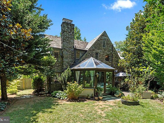 Introducing 7811 Pine Rd, an absolutely charming, updated 4 bedroom, 2.5 bath stone home with 1-car garage in the highly sought-after Wyndmoor neighborhood. The current owners have lovingly updated this home with modern amenities, finishes and landscaping. A new slate and pea gravel walkway with pretty stone walls leads to the front entrance, graced by flickering gas lanterns. Step through the arched front door and notice the original tile floors in the vestibule, gorgeous hardwood floors throughout, and crown molding on the first floor. The living room, with fireplace and fantastic stone mantle, features casement bay windows on two sides, letting in an abundance of natural light. The dining room offers the original corner built-ins, and big bay window overlooking the front yard. Step through to the charming kitchen, with original cabinetry, soapstone counters and center island, stainless steel appliances, gorgeous built-in and coffee bar. The window over the stainless steel farmhouse sink looks out onto the lush rear yard and patio, while a second stairway offers access to the second floor. The 6-sided solarium in the back, was added in 2020, is an absolutely fabulous space that showcases the lush surroundings in all 4 seasons. Encompassed by windows, it features its own heating and air conditioning unit, an exposed stone wall, and French doors to the rear yard, quickly becoming your favorite space in the house – whether for entertaining or relaxing. A powder room with marble tiled floor and glass backsplash completes the first floor. Upstairs, the primary suite is lit by casement windows, and offers vaulted ceilings, hand-stenciled walls, a walk-in closet and an ensuite bath with walk-in shower and marble tiling. Three additional secondary bedrooms, one currently being used as an office with separate closet area at the top of the second stairs, and a full hall bath complete the second floor. Large finished lower level with hardwood floor, recessed lighting and a fireplace. Perfect for a home office or media room. The professionally landscaped yard is filled with hand-picked flowering plants, shrubs and mature trees. A pea gravel patio adjacent to the solarium provides a nook amongst the trees in which to BBQ or entertain family and friends – truly a special little oasis. The yard is fully fenced and offers gates on both sides to the front yard. All this, and an impeccable location that’s walkable to the shopping and dining corridor along Willow Grove Avenue, the Wyndmoor Septa Station on the Chestnut Hill East Line, and easy access to major roads. Don’t miss such a special gem in Wyndmoor – schedule your showing today!