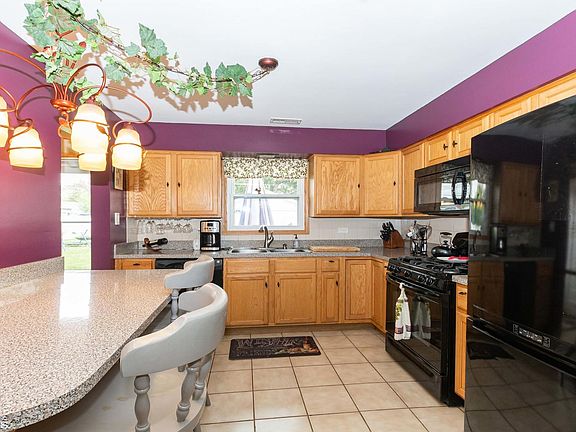 Great starter home. Features two bedrooms. Huge living room/ dining room combo. Updated ceramic tiled bath with whirlpool tub. Newer Kitchen with oak cabinets & newer appliances. Newer roof, windows, furnace, central air, interior doors and trim. New hot water tank. Home has been freshly painted. Outside features large fenced in yard, huge cement driveway, paver brick patio, wood deck patio with pergola and hot tub. 1.5 garage with new epoxy floors. Located near shopping mall, schools and parks.