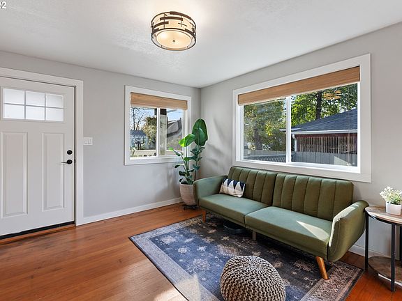 This Mt Scott bungalow welcomes you home with it's bright open living space, fresh paint, wood floors and neutral finishes. The tranquil primary bedroom suite on the main level has a sitting area and remodeled spa-like bathroom. Kitchen is fully updated with new appliances and quartz counters. Upstairs the charm continues with 3 additional bedrooms and extra built-in storage. Tons of natural light and outside you can enjoy the space year-around with its covered patio. [Home Energy Score = 4. HES Report at https://rpt.greenbuildingregistry.com/hes/OR10009722]
