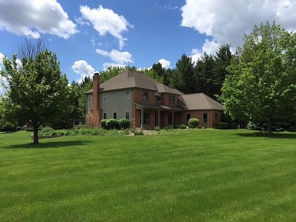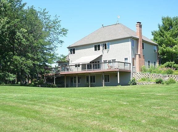 A home you can just move into and enjoy. It is on 3 acres in the Bull Valley area. Let's start with the recently remodeled kitchen with Amish cupboards, granite counters and built-in high end appliances. There is a custom cherry butler's pantry adjoining the formal dining room. The family room with Brazilian cherry floors and fireplace opens out to the Trex deck that extends across the entire back of the home. The main floor has formal living room, dining room and den. Front and rear stairs lead up to 4 bedrooms. The master suite has tray ceiling, huge walk-in closet and beautifully remodeled bathroom. Another bedroom is en suite. The walkout basement has a bathroom, rec room with gas fireplace and radiant heat in the floor. Doors open out to the patio and huge yard. Horses are allowed. Riding trails are nearby. The home has low maintenance brick and Hardy board exterior. Woodstock address, McHenry schools. Taxes will be reduced. Last bill based on over $400,000.