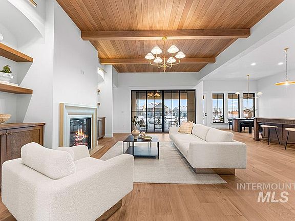 An extraordinary European modern residence set on a serene waterfront lot in the new upscale Terra View community. Custom-built by Sage & Co., the home showcases a refined interior with crisp white plastered walls, 11’ ceilings, warm wood accents, and striking grid-lined windows framing breathtaking waterfront views. The great room is warmed by a striking gas fireplace and telescopic doors that open the home to the entertainment patio. The gourmet chef’s kitchen boasts marbled slab countertops, a fluted wood island, and creamy off-white cabinetry. High-end appliances ensure easy meal prep, complemented by a butler’s pantry with additional appliances, a prep sink, and magazine-worthy finishes. The main-level master suite unveils cathedral ceilings with exposed beams, direct patio access, and a lavish en-suite bath and dressing room. Outdoor spaces include include a wrap-around covered patio, a beachfront firepit area, and a sandy beach. This new community features a pool, clubhouse, park, & 21 lakes.