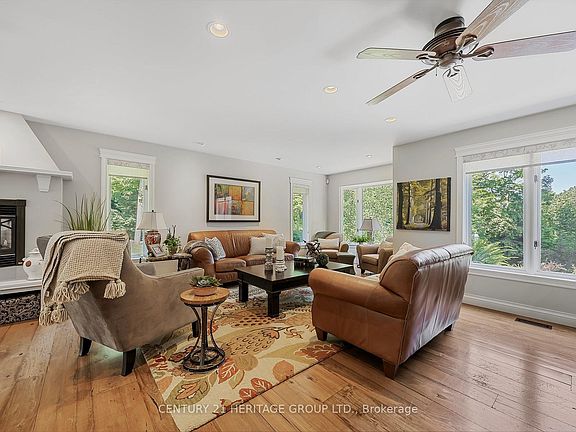 Welcome to this truly special 2.2-acre property tucked away at the end of a quiet dead-end road in Rural Essa. Surrounded by majestic hardwood forest and scenic farm fields, this private retreat offers a rare connection to nature, complete with the peaceful soundtrack of birdsong and the rustle of towering trees. With few neighbours and no through traffic, its the ultimate escape. The beautifully landscaped grounds feature multiple stone patios and outdoor seating areas, and a stunning heated in-ground pool perfect for summer days spent lounging or entertaining. A charming pool house with an insulated upper-level Bunkie adds flexible space, while a rear shed/mini barn provides additional storage and charm. Inside, the home blends warmth, character, and thoughtful design. Reclaimed hemlock floors add rustic elegance to the main living areas, which include a cozy great room with propane fireplace, a dining room with woodstove, and a large separate family room ideal for gathering and unwinding. The spacious Muskoka room is a showstopper, featuring vaulted ceilings, screened-in walls, and ample space to relax or host in total comfort. The main floor also features a well-appointed mudroom with custom cabinetry, benches, and drawers. Upstairs, the primary bedroom is a private retreat with a walk-in closet and an ensuite featuring heated floors and a custom shower. Three additional bedrooms complete the upper level, each with built-in storage and custom cabinetry. A separate loft space offers a cozy and flexible area perfect for reading, relaxing, or creative use. The mostly finished basement adds even more usable space with an option for a fifth bedroom, laundry area, pantry, cedar closet, storage room, and dedicated exercise area. A walkout to the attached garage adds convenience and functionality to this flexible lower level. 16min to HWY400. 25min to Barrie. 40min to Collingwood.