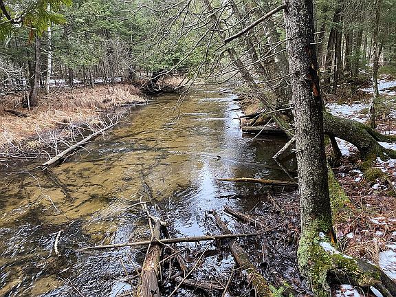 Vacant mostly wooded 172.4 acre parcel with diverse topography with a flowing stream and a spring fed stream.