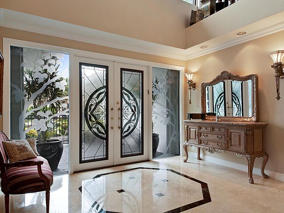 Exquisitely appointed estate home in the exclusive Boca Grove community. This astounding 4 bedroom, 4 bath home has a 4,252 SqFt floorplan designed for entertaining on a grand scale with a formal living room, formal dining room, a loft and a family room with a custom bar. The gourmet kitchen will inspire your inner chef with top-of-the-line stainless steel appliances, a center island, stacked cabinets with lighting, granite counter tops, full granite backsplash, a pot filler and off-white cabinetry with decorative molding. Through the double door entrance of the divine main retreat lies a vaulted wood ceiling, slider to patio and his and hers custom closets. Opulent main bath features dual sinks, jetted tub and a walk-in shower with dual shower heads