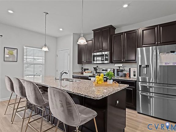 MOTIVATED SELLER!!! PRICE IMPROVEMENT ON THIS PRISTINE PROPERTY!! Welcome to 7812 Mint Lane, a well-maintained, "like-new" townhome in the highly desirable neighborhood of Silverleaf. PRICED TO SELL, this townhome certainly gives you "bang for buck". This end-unit townhome boasts an exterior elevation that features beautiful brick veneer and vinyl siding. Upon entrance to the ground level (through the front or from the ATTACHED 2 CAR GARAGE), you are greeted by a cozy flex space that can be used as a family room, den office, man can, she cave...YOU NAME IT! In addition, you will find ample storage/closet space and even hook-ups for a half-bathroom **Potentially Increasing The Value**! Moving along to the second level of the home is a thoughtfully curated, open layout floorplan that seamlessly blends the kitchen, dining area and living room. The kitchen is of modern taste, and a chefs dream featuring a huge island, pantry, stainless steel appliances, upgraded espresso colored cabinets, stone countertops and LED lighting. The dining room is well illuminated and overlooks your personal balcony. The family room is cozy and accommodating. The upper-most level of the home features HIGH CEILINGS, 3 bedrooms including the spacious primary suite, laundry room (no more carrying clothes downstairs to wash), a full hall bathroom. The primary suite is adorned with trey ceilings, a walk-in closet, an ensuite with dual vanities, and a walk-in shower with tiled surround. If you are looking for MOVE IN READY, LOW MAINTENANCE, LIKE NEW LIVING...THIS HOME IS FOR YOU! The Silverleaf community offer residents access to the community pool, gym, clubhouse, playground, soccer field and other common areas. Commuting is also a breeze with access to major highways close by. This home is also close to major developments and minutes away from downtown Richmond, MCV, VCU, VUU, U of R.