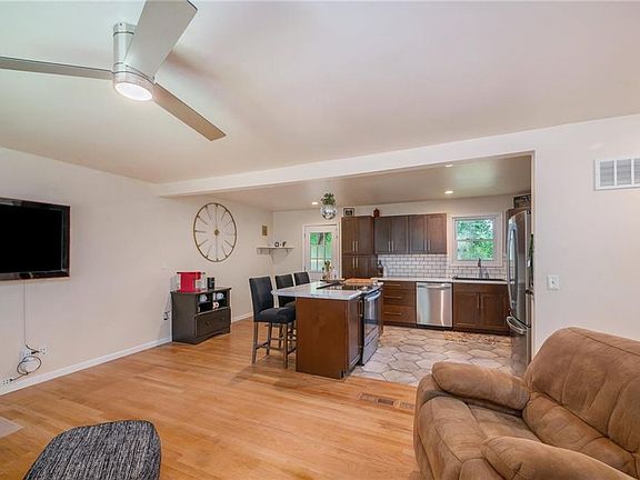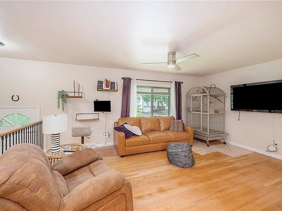 Welcome to this charming split-entry home nestled in a serene neighborhood. With its inviting exterior and well-maintained landscaping, this property offers both comfort and functionality. Upon entering, you are greeted by a spacious living room, illuminated by natural light filtering through large windows. The living room features hardwood floors and offers a cozy atmosphere, perfect for relaxation and entertainment. Adjacent to the living room is the modern kitchen, equipped with stainless steel appliances, ample cabinet space, and a convenient breakfast bar. The kitchen flows seamlessly into the dining area, creating an ideal space for family meals and gatherings. Downstairs, the family room provides additional living space, ideal for a play area, home office, or a media room. The home boasts four bedrooms, each offering privacy and comfort. The remaining bedrooms are generously sized and share a well-appointed full bathroom. Outside, the fenced-in yard provides a secure environment for pets and children to play freely. A deck off the dining area overlooks the backyard, offering a perfect spot for outdoor dining or relaxing with a morning coffee. Conveniently, the home also features a two-car garage, providing additional storage space. Located in a peaceful residential area with easy access to schools, parks, and shopping, this home combines comfort with practicality, making it an ideal choice for family living.