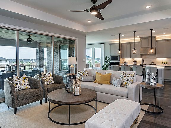 Spacious Austin, TX Home Available with Multi-Generational LivingFrom striking elevations to an incredible selection of structural options and upgrades, the Onyx house design at Easton Park is just as adaptable as a new build custom Austin home. A perfect choice for Austin new home buyers seeking extra square footage with the convenience of a sprawling one-story plan, Onyx delivers an impressive array of flexible living spaces.Amateur chefs love the bright & spacious gourmet kitchen and if you enjoy hosting family and friends, an expansive great room with optional corner fireplace is the perfect destination for a lively get together. Take the party outside to the generous covered patio or set up a sophisticated custom dinner party in the formal dining room.A remarkable owner's retreat comes standard with dual sinks & vanities, spa-inspired soaking tub, beautiful shower enclosure, private WC and a massive walk-in closet. Two of the secondary bedrooms also feature walk-in closets and this Austin, TX home design offers the unique option to add a luxurious multi-generational suite complete with foyer and cozy sitting room.Cook in Style! Travis County Home with Gourmet KitchenGood food is meant to be celebrated. If you're looking for Austin, TX real estate with a deluxe kitchen layout, you'll love Onyx. Designed to seamlessly connect the kitchen to the casual dining area and great room, a generous center island is all that separates meal prep from the gathering room.
