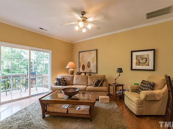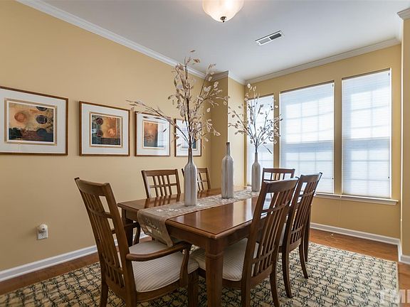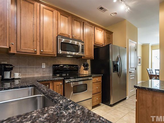 Stunning & Highly Upgraded Brier Creek Townhome with THREE FULL BATHS, HARDWOODS, crown molding, GRANITE counters, stainless steel appliances, TILE FLOORS in kitchen and bathrooms, TWO GAS FIREPLACES, recessed & track lighting, tile backsplash, 42" maple cabinets. Master includes walk in closets, vaulted ceil, garden tub & dual vanity. Secondary bedroom is as large as master. Third Bedroom/Bonus includes two closets and private bath. CUSTOM BLINDS throughout. HUGE ADDTL STORAGE ROOM. Pool and Clubhouse!