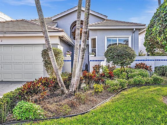 Welcome to The Palms at Boca Pointe. This modern home offers immaculate living spaces and breathtaking water and garden views. This beautiful residence provides a comfortable and stylish living experience with a kitchen that boasts modern appliances, sleek cabinetry, and ample counter space. The open floor plan seamlessly connects the living, dining, and kitchen areas, creating an inviting atmosphere for both relaxation and entertaining. Outside, the property sits on a generous lot, offering the perfect setting to enjoy the Florida sunshine and the serene views. Whether you're lounging on the patio or taking a stroll through the garden, you'll find a sense of serenity and relaxation. NO MANDATORY MEMBERSHIP!! Roof is 2008 and air is 2018.