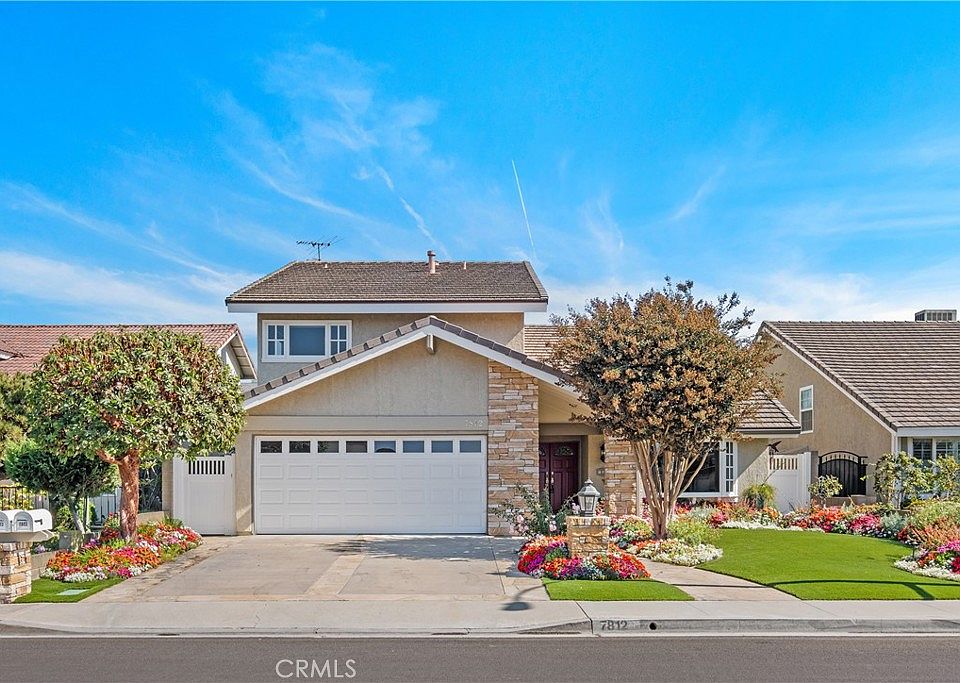 Step into luxury with this stunning property that boasts a perfect blend of elegance and modern amenities located in the heart of La Palma. It features three bedrooms and two and a half bathrooms, providing ample room for comfortable living. The inviting curb appeal and well-maintained landscaping create a welcoming first impression. As you step inside, you'll be greeted by a spacious entryway that sets the tone for the home's open and airy atmosphere. The open concept layout allows for seamless flow between the living, dining, and kitchen spaces, creating a versatile and functional floorplan. The custom wrought iron staircase and banister add a touch of sophistication along with vaulted ceilings in the foyer and living room. This home is equipped with top-of-the-line Thermador stainless steel cooktop, stove and dishwasher along with a Samsung stainless Fridge and a Perlick Wine Fridge. Enjoy the natural light streaming through the dual pane windows, highlighting the beauty of the Engineered wood flooring and recessed lighting. All bedrooms are located upstairs with a separate office that can be used as an additional bedroom. The spacious yard, covered patio, and lush landscaping offer ample opportunity for outdoor living and entertaining. Durable and attractive Pebble Tec flooring is found in the garage. This home has been meticulously updated with modern finishes and fixtures, ensuring a move-in ready condition. Don’t miss the opportunity to make this exquisite property your new home.