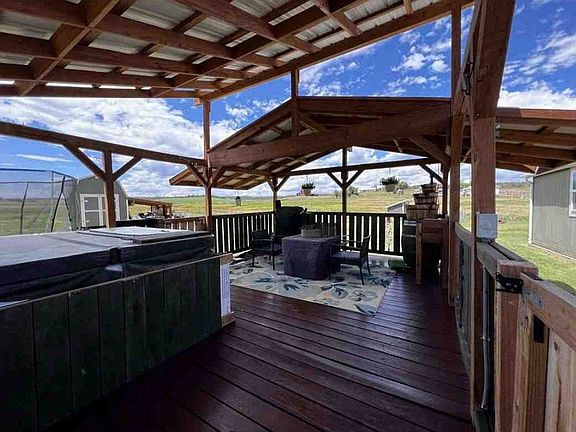 Walk out the back door to a large custom designed covered deck, that includes a 5 person hot-tub, railing on all sides, and several electrical outlets, making it the perfect place to enjoy your morning coffee or watching sunsets. It is a must see! This property also includes a 10x24 lofted-barn style shed with windows and electrical. Lots of shelving has been added to accommodate all your storage needs and place for every tool. There is a large built on lean-too for storing all your toys. If you are looking to start a hobby farm this property also includes a chicken coop with a fenced in area for your chickens and a covered area for smaller farm animals. There is also an area with 6 foot fencing for your own private garden. The water is through LPAWD. An appraisal has been done recently.