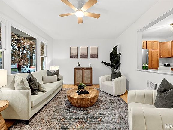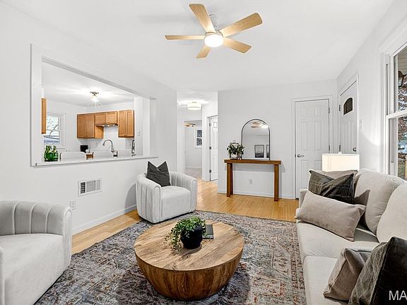 Be prepared to fall in love with this beautifully renovated 2bd, 2bth ranch, overflowing with charm and curb appeal. Sun-filled picture windows brighten the living room, which flows seamlessly into the spacious kitchen featuring gorgeous new quartz countertops, stainless steel appliances, new sink and faucet, ample cabinetry, breakfast bar, and updated lighting. The fully reimagined hall bath offers tile flooring, a subway-tiled tub/shower, and sleek chrome finishes. Both bedrooms include ceiling fans, fresh carpet, and generous closet space. Additional main-level highlights include bamboo flooring, updated vinyl windows, new paint and lighting throughout, plus a coat and linen closet. Head to the finished lower level—perfect for movie nights, a gym, or hosting. The full bath features new tile flooring, shower surround, vanity, and chrome fixtures. The large laundry area provides room for storage and even a workshop. Outside, enjoy a fully fenced backyard with patio and a charming covered front porch. The OVERSIZED 1-CAR GARAGE offers space for parking, storage, trash bins, and a work area. Major updates include NEW roof, gutters, and downspouts (Sept. 2025). Move-in ready and located in a fantastic South City neighborhood—this one is a must-see!