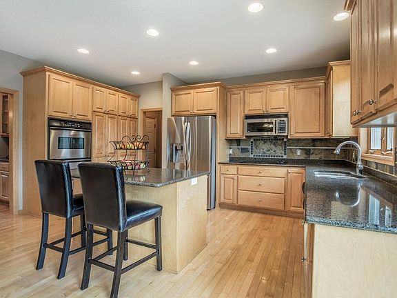 Main Level * Gorgeous 2-story entry with large foyer transom window, hardwood flooring, and cascading staircase is a warm welcome to any guest. * Office with elegant French doors, wall of built-ins, and front yard view. * Living room highlights floor-to-ceiling stone gas fireplace, beautifully designed built-ins for customized storage, media display for showing off your favorite things, decorative arched entryways, and grand windows bringing the beauty of the outdoors inside. * Formal dining room with hardwood floor and serene mealtime views. * Kitchen features stainless steel appliances including double wall ovens, cooktop, tile backsplash, ample cabinetry including walk-in pantry, granite countertops, center island with seating, above the sink window, and recessed lighting. * Dinette with easy deck access offering year-round picturesque views. * Convenient main floor laundry with built-in boot bench with cubbies and coat hooks, closet, tile floor, window, utility sink, and cabinetry with counter space. * Attractive 1/2 bath with wood flooring, decorative easy-care tiled wall, and pedestal sink. Upper Level * Master suite with double door entry, deep tray vaulted ceiling with fan, walk-in closet, and peaceful views. Luxurious master bath features tile flooring, double sink vanity, additional walk-in closet, private water closet, whirlpool tub, and windows. * 4 bedrooms on one level. * Spacious full bath with tile flooring and double sink vanity. Lower Level * Spacious family room offers wood floor, floor-to-ceiling stone gas fireplace, sconce lighting, generous recessed lighting, and lit art niches with granite tops. Adjacent wet bar with granite counters, tile backsplash, beverage refrigerator, and sink. Abundant natural light. * Exercise room offers pockets doors, wall ready TV, and durable mat flooring. * Flex room could be used as a bedroom, game/hobby/toy room++, so many options. * 3/4 bath with tile floor and impressive tiled shower. Additional Features * Large main level deck with steps to the expansive flat backyard. * New roof and new steel siding. Gutters and in-ground sprinkling system. * 3 car garage with epoxy painted floors. * Tiered landscaping brings a “WOW” factor to gardening.