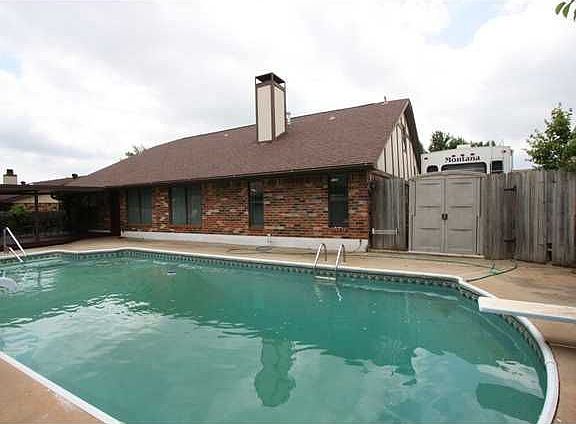 W LOWER PRICE, vacation at home with this beautiful large in ground pool/slide & covered patio. Lovely home in a nice neighborhood, living room, kitchen with Jenair double oven and 6 burner stove, Granite Transformation counter top, including wet bar, 3 bedrooms and 2 bath down and laundry room Maytag wash/dryer; large family rm, 4th bedrm, & and office upstairs. Parking for boat/RV. Covered Storm Shelter. OPEN HOUSE 11 AUG 2-4PM