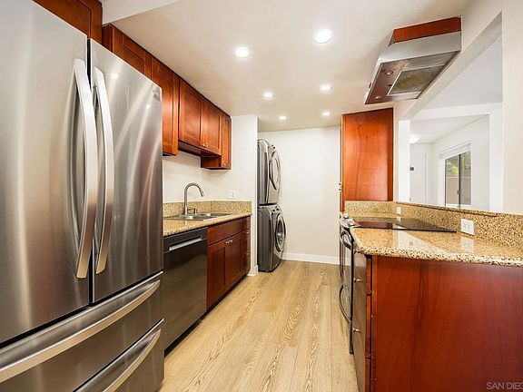 Welcome to your beautiful new home in the heart of Serra Mesa's sought-after Birdland neighborhood! This charming 2-bedroom, 1-bathroom townhome offers the perfect blend of comfort, style, and convenience. Nestled in a quiet community with easy access to major freeways, you'll love how centrally located you are—just minutes from Fashion Valley Mall, top-rated hospitals, shopping, and dining. From the moment you arrive, the lush greenery, mature trees, and well-maintained landscaping at the entrance set the tone for the serene living that awaits inside. Step through the front door into a spacious living room with an open layout that feels warm and welcoming. The home features not one, but two private patios, perfect for morning coffee or weekend BBQs. The rear patio even connects directly to your covered carport—just pull in and walk right into your home. Upstairs, you’ll find a large primary bedroom with a walk-in closet and a fully remodeled bathroom featuring beautiful tile work and an upgraded vanity. Modern mini-split A/C systems upstairs and downstairs ensure year-round comfort. As part of a well-kept community, you’ll also enjoy access to a sparkling pool—the perfect retreat on sunny San Diego days. Don’t just take our word for it—come see this gem in person and experience the perfect blend of peaceful living and city convenience!