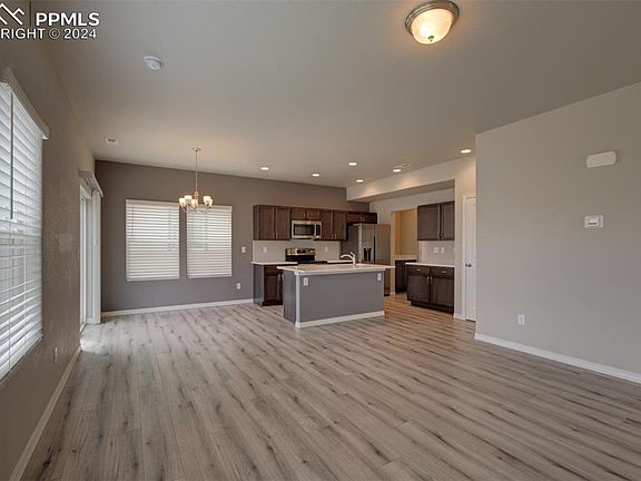 Welcome to your stunning two-story abode nestled in the serene Skyline Ridge community! D20 Schools! Step into luxury living with an inviting main level boasting an open floor plan with LVP flooring, highlighted by a chic powder room, floods of natural light cascading through sizable windows, and exquisite contemporary color palettes. The heart of the home, the kitchen, is a culinary oasis equipped with stainless steel appliances, solid service countertops a generously sized island perfect for casual dining, abundant cabinet space, a convenient pantry, a graceful dining area, and seamless outdoor access, facilitating effortless entertaining. Ascend the stairs to discover a serene sanctuary on the upper level, featuring a lavish primary bedroom retreat complete with a spa-like 5-piece bath, a walk-in closet, alongside two additional well-appointed secondary bedrooms and another full bath. For added convenience, the laundry room is on the upper level.