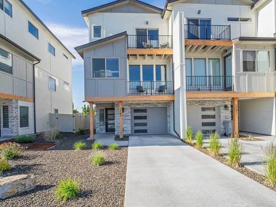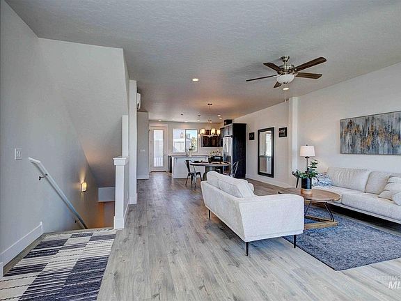 Enjoy views of Boise Foothills & City Lights at night from Great Room and Master Bedroom Balconies. Step out to the Kitchen Balcony for cup a coffee during sunrise or afternoon outdoor grilling & overlook your private fully fenced backyard. All finishes have an upscale touches of beautiful granite counter tops and stainless steel appliances with an innovative floor plan. HOA takes care of backyard mowing, sprinkler system, community gazebo & common area. Includes Vinyl Plank Flooring, tile backsplashes and shower flooring, 3 balconies, 2 car tandem garage. Enjoy low yard maintenance with xeriscape front landscaping. Solar cuts energy bills way down. Owner pays for the HOA fees, and tenant pays for the electricity, water, sewer, garbage, and any other tenant responsibilities. There will be a pet deposit of $400 that will be used to fully clean home and carpets after tenants moved out if needed. No smoking. Parking is free on road, and there is plenty of space in driveway and tandem garage.