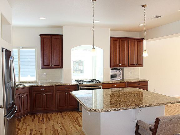 Move-in ready Custom-Built 3 bed/3 bath home with attached 2 car garage. Open floor plan. The open style kitchen features an oversized island with bar, recessed and pendant lighting and stainless steel appliances are included. Main level primary bedroom suite includes a retreat/sitting area and an adjoining spa like bathroom. Upper level of the home includes a second primary bedroom suite with adjoining bathroom. Living room with walk-out to concrete patio in the backyard. Family room. Freshly painted interior and new carpet. Central air. 2,577 sq. ft. of space! Easy access for commuting. Close to walking trail and park.