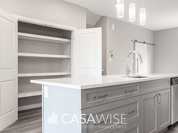 ? Kitchen features: large island, quartz countertops, stainless steel appliances, tile backsplash and spacious pantry.